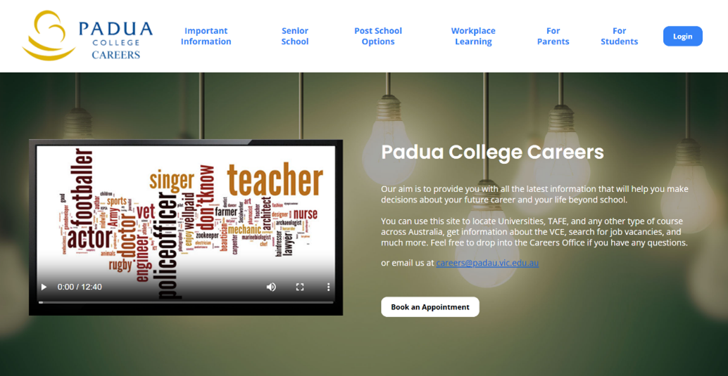 We have a dedicated school careers website to assist students with their career research, portfolio development, and post-school planning. In addition to the main website, students have their own secure area to create and store their personalised career documents.